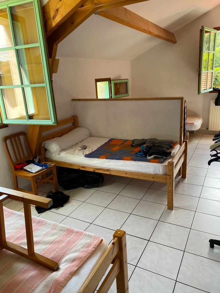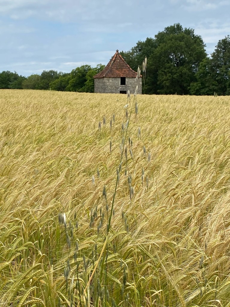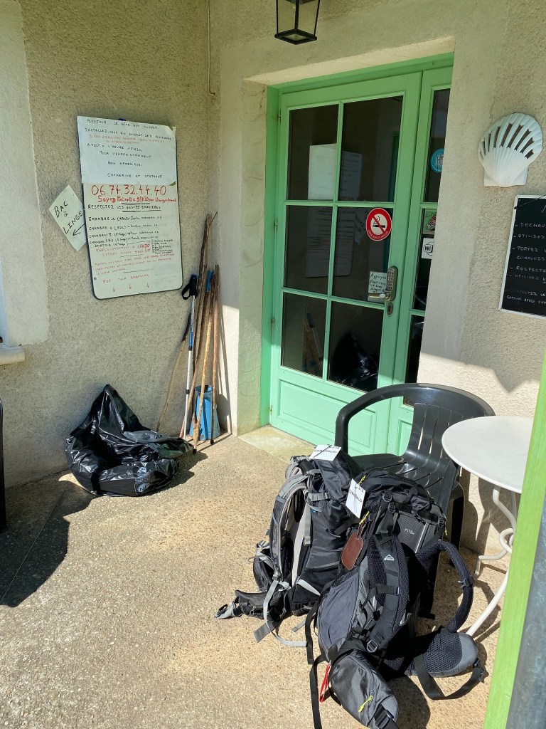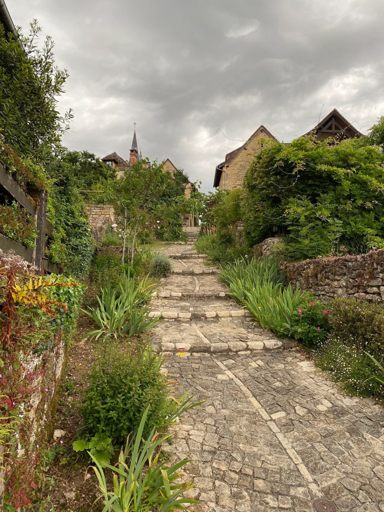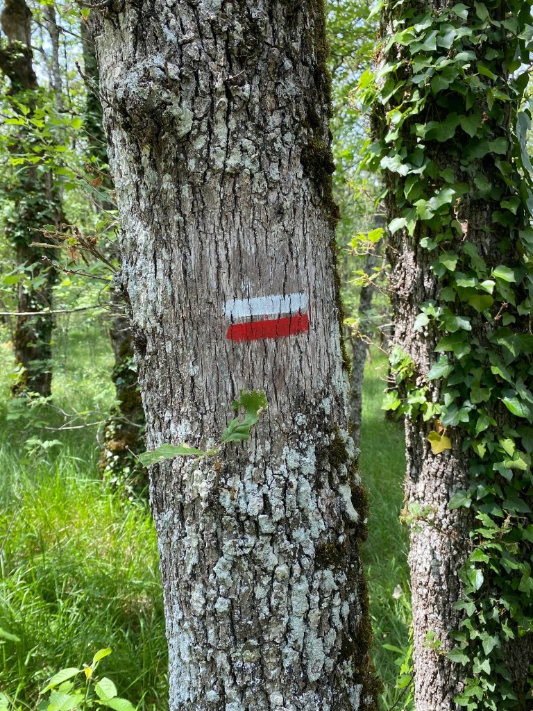 Mardi 31 mai, ce début d’étape sous la pluie permet un échauffement tout en douceur. Encore beaucoup de route pour rejoindre le Mas de la Croix situé peu avant le village de Béduer. C’est ici que je fais mes adieux à Virginie qui opte pour la variante du Célé. J’entre dans une immense forêt de chênes, le plus souvent rabougris et maigres, mais leur ombre est généreuse. J’y croise un chevreuil peu farouche. La suite est une balade où je découvre les premiers causses du Quercy et les cazelles petits abris en pierre sèche. Le temps d’une pause sandwich sur le site des dolmens de Pech Laglayre et je retrouve les petits chemins, mêlant terre et cailloux. L’arrivée sur Cajarc offre un beau panorama. Installation au gîte Le Pèlerin et dîner entre copains.
