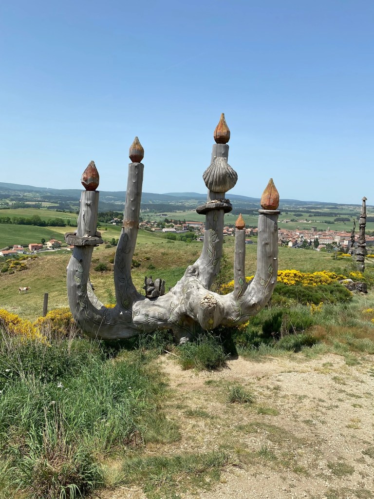 Samedi 21 mai, je quitte le Velay pour le vaste territoire historique du Gévaudan. A travers les montagnes granitiques de La Margueride, plus boisées que lors de l’étape précédente, un terrain accidenté m’attend pour rejoindre la vallée à Monistrol suivi d’une montée raide vers la chapelle troglodyte de la Madeleine. Après 20 km de marche, j’arrive à Saugues, au gîte Itier-Martins tenu par Jésus à l’accueil particulier, car ici on applique les consignes militairement et on mange le traditionnel boeuf bourguignon. En ce début de chemin, une belle rencontre va marquer et sceller une belle amitié avec mon ami Hervé.