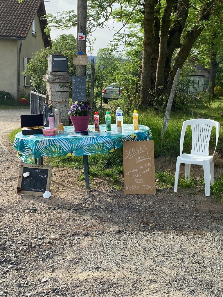 Dimanche 22 mai, troisième étape de 27 km entre Saugues et Lajo dans une Margeride inondée de soleil. Sans fard, la région exhibe le quotidien de la vie rurale ordinaire. Le chemin se balade longtemps, entre prairies et forêts de pins, sans vraiment jamais y pénétrer. Déjeuner amical à l’auberge templière du Sauvage. Je passe la frontière de Haute-Loire pour arriver en Lozère sans avoir vu la bête du Gévaudan. Nuit chez Rachel au gîte Les Boulots Nains. Une grande et excellente table avec de beaux échanges et de bons moments dans l’esprit du chemin.
