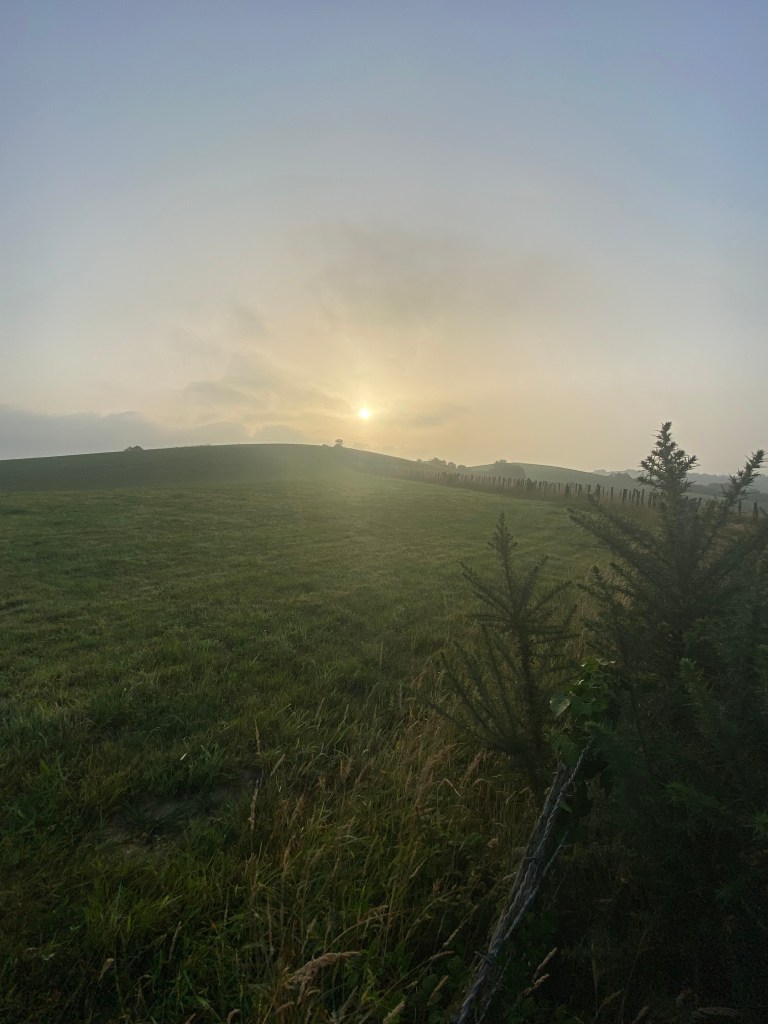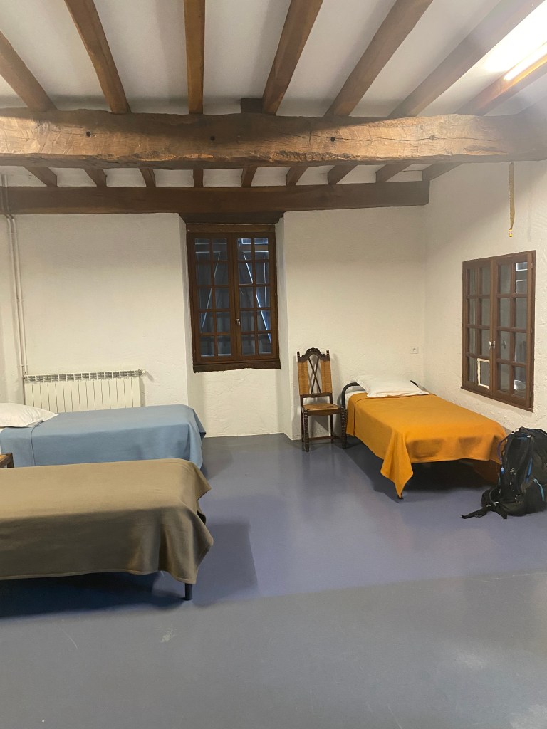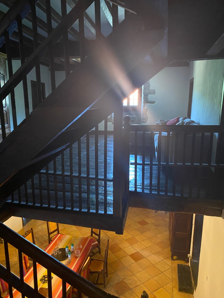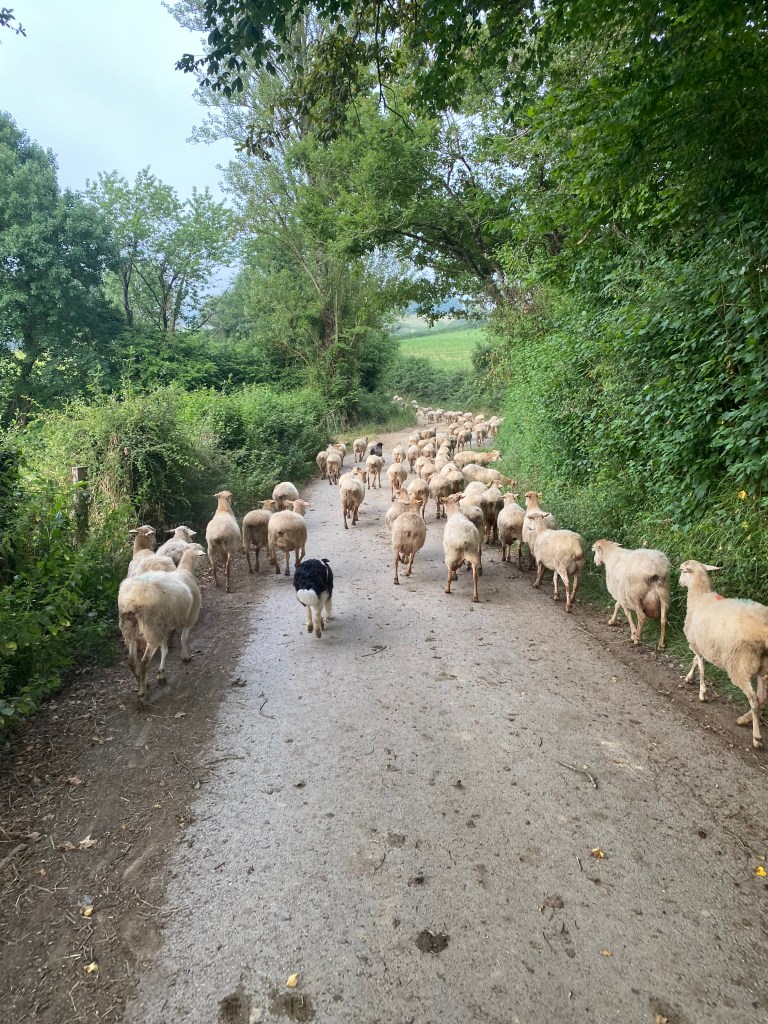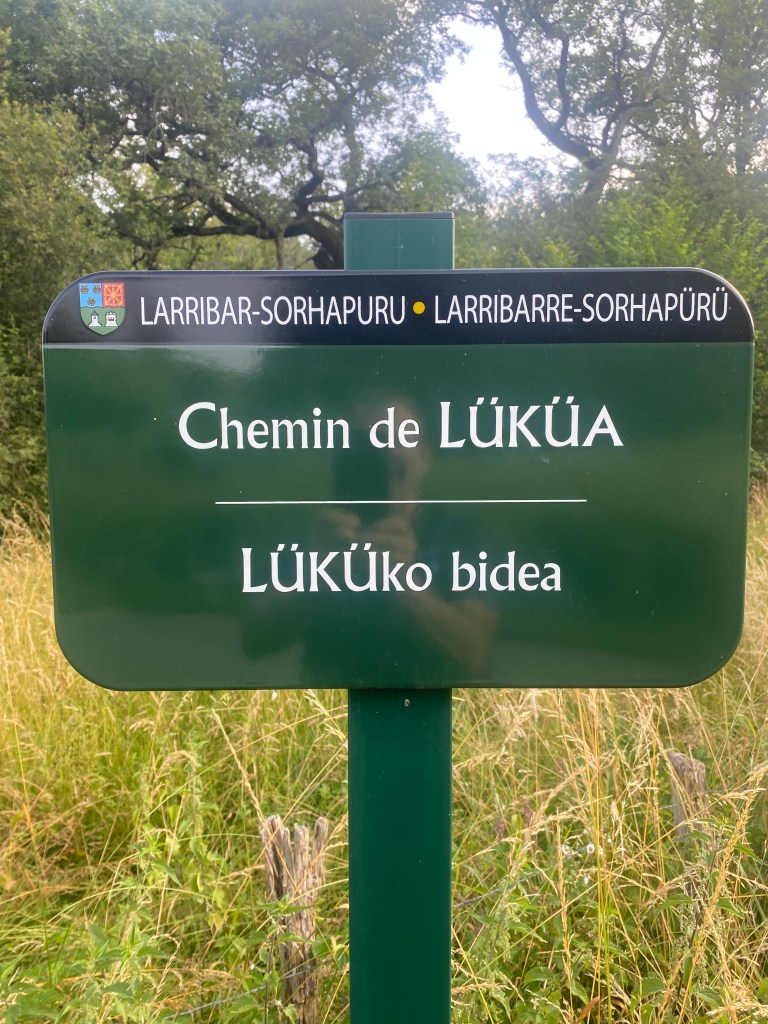 Mercredi 15 juin, c’est mon avant dernière étape (24 km) sur la voie du Puy. Dès le départ, les côtes font leurs apparitions jusqu’en fin de journée. Les vues panoramiques se multiplient et les fermes apparaissent entourées de pâtures. Un troupeau de moutons m’escorte sur plusieurs centaines de mètres. C’est sans doute l’étape la plus physique de ces derniers jours tant par ses montées et ses descentes, ce qui est, somme toute, logique lorsque l’on arrive en pays montagneux. Halte devant la stèle de Gibraltar qui symbolise le point de rencontre de trois chemins du Puy, de Vézelay et de Tours. Quelques kilomètres plus loin, j’entame l’ascension sur la draille, ce long chemin rocailleux qui me mène au point culminant de l’étape. Si la montée est raide et fatigante, la vue qu’elle offre depuis le sommet est magnifique. A cet endroit, s’élève un oratoire, la chapelle de Soyarza, entourée d’un collier de platanes. La descente vers le bois d’Ostabat me conduit au gîte Etchetoa. Atmosphère particulière dans cette batisse du 17° siècle, où j’ai tout apprécié.
