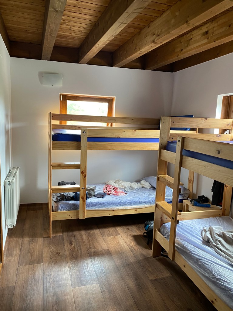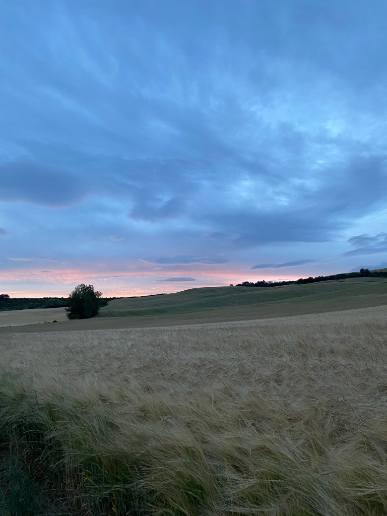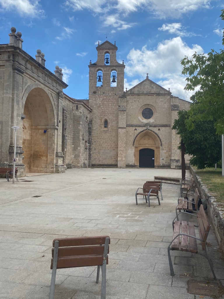 Samedi 25 juin, le jour à peine levé, départ de Belorado en direction du petit village d’Agès à 28 km. Premier village, petite pause café, avant de repartir par une belle montée à travers la forêt. Les paysages changent, sur la ligne de crête la bruyère agrémente le bord du chemin. Le suite du trajet se fait sur de longues pistes forestières. Sortie de la forêt, se profile San Juan d’Ortega avec son église et son monastère. Une pause déjeuner et le chemin reprend à nouveau à travers la forêt jusqu’àau terme de mon étape du jour. Ce soir je dors dans l’albergue Fagus, je partage la chambre avec trois femmes. Repos avant d’aller dîner entre compagnons de voyage dans un petit restaurant atypique.
