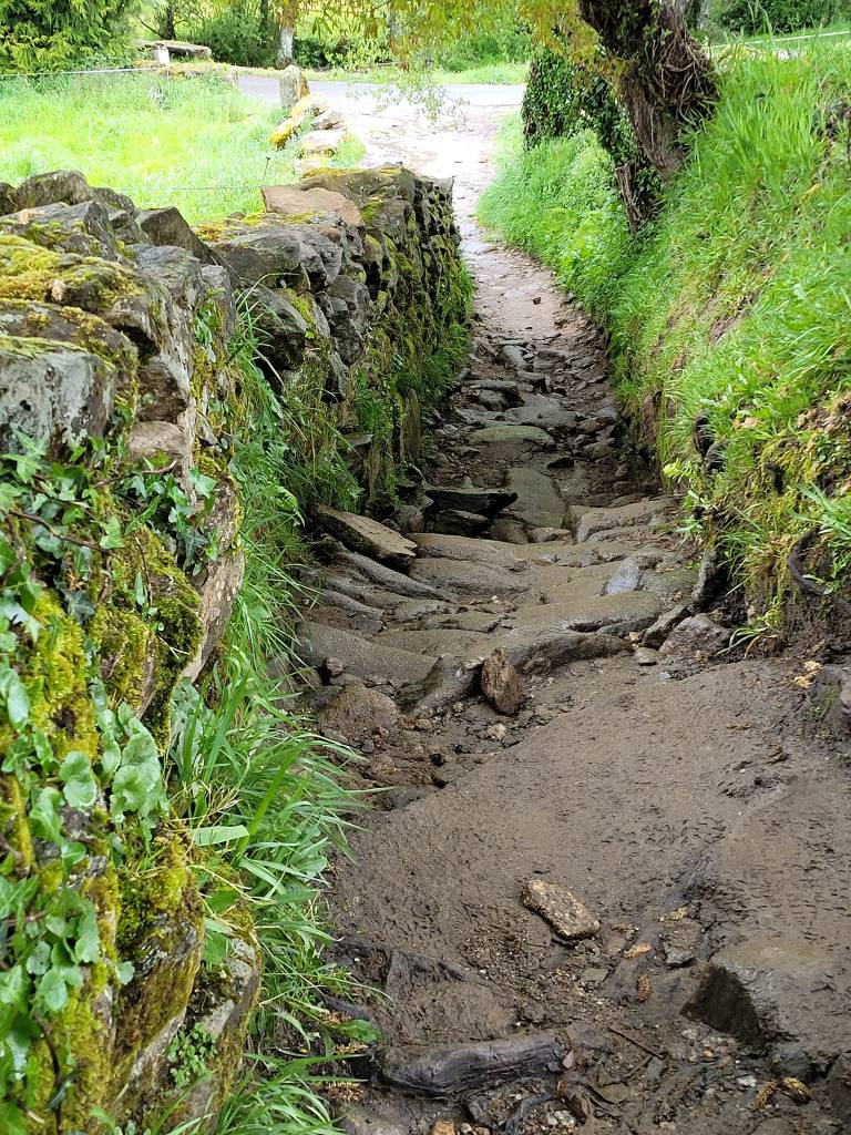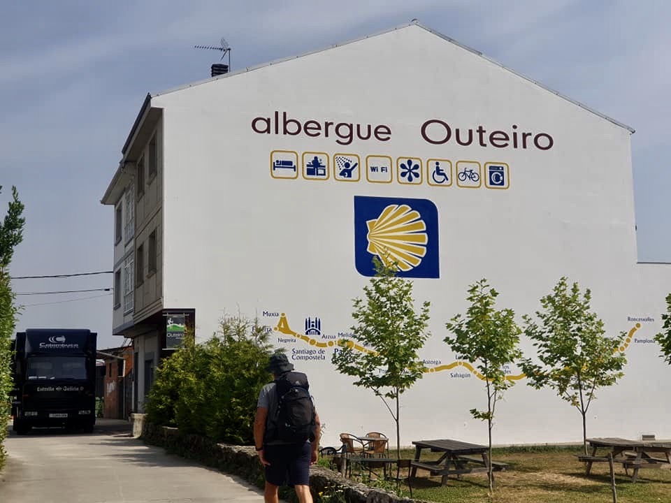Jeudi 14 juillet, jour de fête nationale dans mon pays. Encore un départ avant le lever du jour pour éviter les grosses chaleurs. Je prends une route qui s’élève pendant plus d’une heure pour me mettre en condition. A cette heure matinale, la brume enveloppe la vallée, elle se lèvera petit à petit pour offrir une journée radieuse. Sur cette portion du chemin il y a beaucoup d’auberges, je m’arrête dans le premier endroit sympathique. Comme hier, un cheminement très agréable dans la ruralité et la verdure sous toutes ses formes : bois, cultures, champs où paissent le bétail. Toujours des villages typiques et leurs petits corps de ferme où le temps semble s’être arrêté. Que dire de plus ? La Galice plus j’y marche, plus j’aime. Petit à petit les kilomètres défilent, vers 11 heures, après un parcours de 26 km, j’arrive à Palas de Rei. Direction l’albergue Outeiro qui ne propose pas de repas, aussi je choisis un restaurant tout proche.