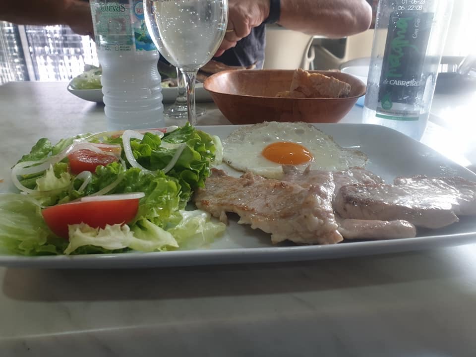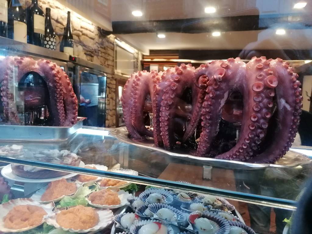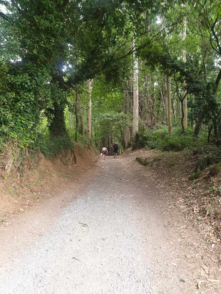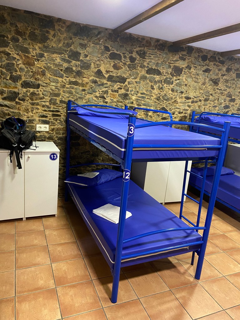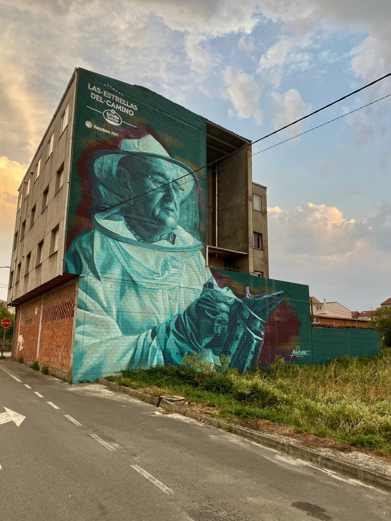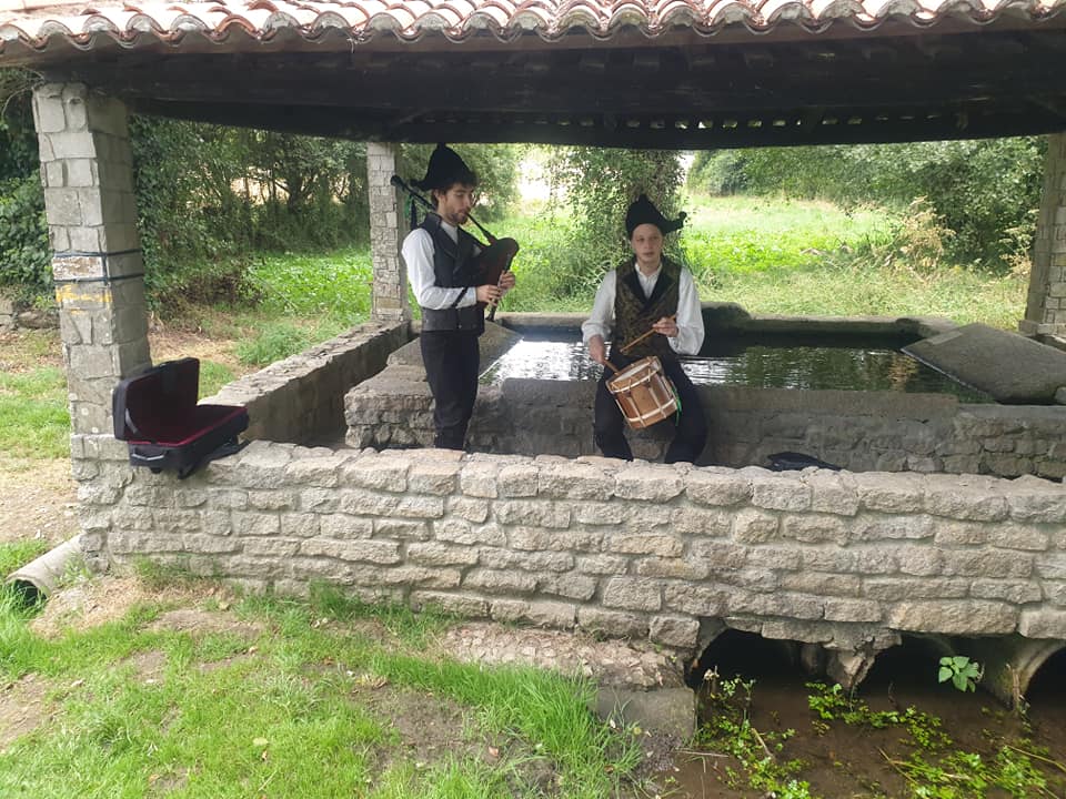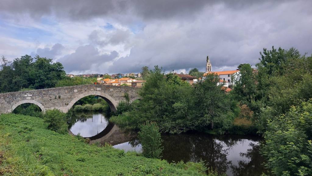 Vendredi 15 juillet, une étape de 27 km pour rejoindre Ribadiso de Baixo. Mon trajet suit l’axe de la nationale N547 que je traverse à plusieurs reprises. Généralement, je marche seul, mais aujourd’hui, je vais passer une grande partie de l’étape à discuter avec Maria une espagnole et Jean-Claude mon acolyte. Au détour du chemin, dans un lavoir, un son de musique celtique se fait entendre, il provient d’un joueur de gaïta et d’un tambourineur en costume traditionnel. Aujourd’hui encore énormément de monde, des marcheurs, minis sacs à dos, en jeans et basckets, et surtout de très jeunes espagnols, il semble qu’en obtenant leur compostela, ils récupèrent ainsi des bonifications pour leurs études. A Melide, des poulpes toutes tentacules dehors sont exposés dans les vitrines des restaurants pour nous faire venir l’eau à la bouche, je vais leurs préférer mon éternel pan con tomate. Une fin d’étape vallonnée ; je franchis un joli pont médiéval, puis j’arrive à l’albergue Milpes en pension complète.