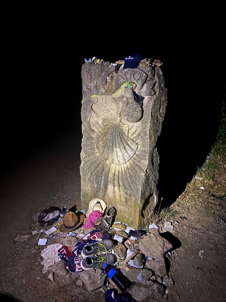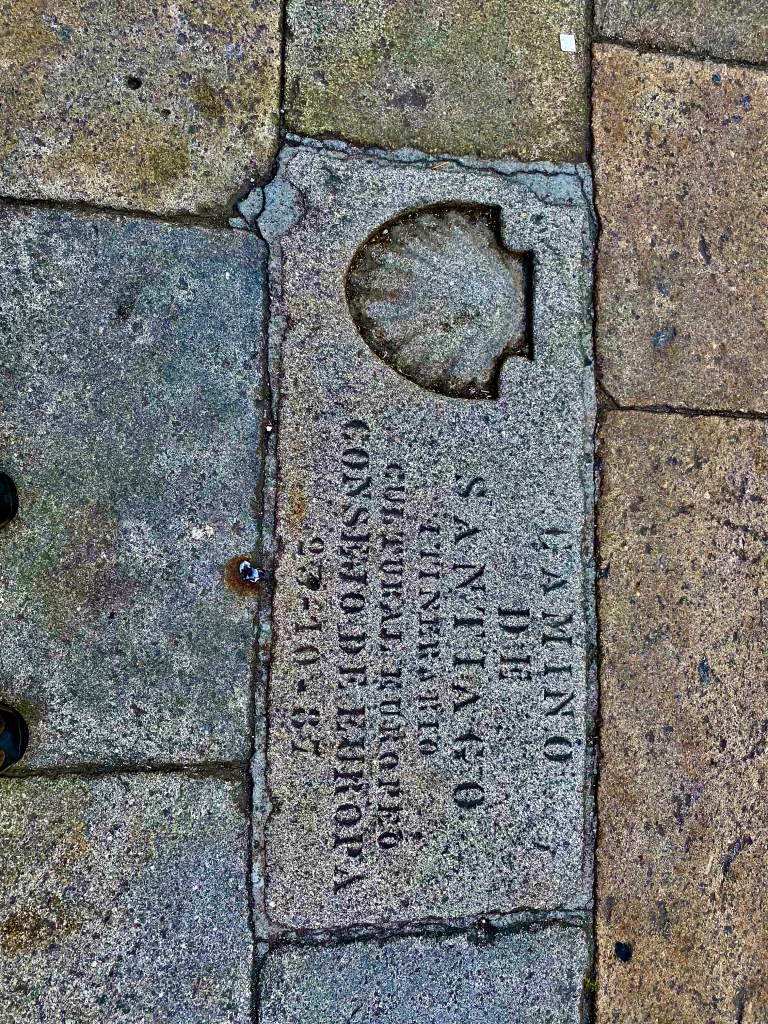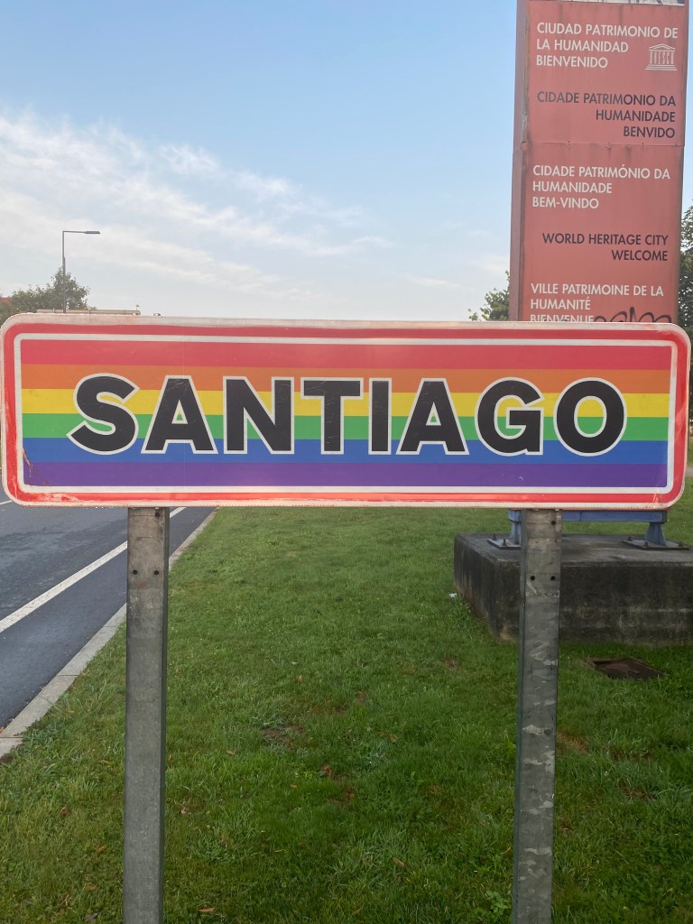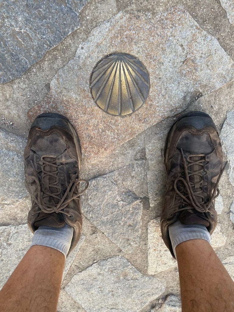 Dimanche 17 juillet, c’est un grand jour, je me lève très tôt un peu avant 4 heures. La nuit a été courte, sans doute l’excitation d’en finir. Me voici donc en marche pour cette ultime étape, il fait nuit noire. Qu’il est agréable de marcher ainsi, seul dans l’obscurité au coeur des dernières forêts d’eucalyptus. Je garde un bon rythme, je suis perdu dans mes pensées qui déroulent le film de tout ce que j’ai vécu sur le chemin. Heureux moment de vie où j’ai pu apprécier l’instant présent et mettre à profit ce moment privilégié que de me retrouver face à moi-même. Je savoure chaque pas, et chaque paysage qui me rapproche vers mon but. Après le vacarme des pistes de l’aéroport, passage à Lavacolla, au nom évocateur. La tradition voulait que le pèlerin se lave intégralement avant l’entrée dans la ville sainte de Santiago. Quelques rares marcheurs à cette heure-ci. Peu avant Santiago, le chemin grimpe le Monte do Gozo, d’où un panorama sur la ville s’offre à moi. Puis c’est la descente vers Santiago et ses faubourgs. C’est une grande ville, le centre historique est encore loin. L’arrivée est assez spéciale, car à aucun moment, quand on rentre dans la ville, on aperçoit la cathédrale. Plus je m’en approche, plus il y a de monde, pèlerins, touristes ça grouille. Rien ne peut contenir mon entrée triomphale, en musique au son de la gaïta, sur cette place Obradoiro. Vers 9 heures, ça y est après 22 km j’y suis, je l’ai fait. Je retire mon fidèle sac dos, je m’assois, la cathédrale, vers laquelle j’ai marché ces 2 derniers mois, se dresse devant moi ! Pas facile de décrire cet instant, plein d’émotions, je prends conscience que c’est fini et que c’est bien ici que se termine mon pèlerinage. J’appelle ma moitié pour partager l’instant. Parti du Puy-en-Velay le 20 mai et puis 57 jours et 1 515 km plus tard me voici à Saint-Jacques-de-Compostelle. Tout c’est passé si vite, signe des biens-faits du chemin. Je suis fier de ce que j’ai accompli, cela n’a pas été simple tous les jours loin de là. Néanmoins ce n’est pas un exploit extraordinaire, il est à la porter de tous. Je retrouve Jean-Claude qui arrive à son tour et d’autres pèlerins, on se salue, se félicite et on se sépare dans cette atmosphère du pèlerinage.