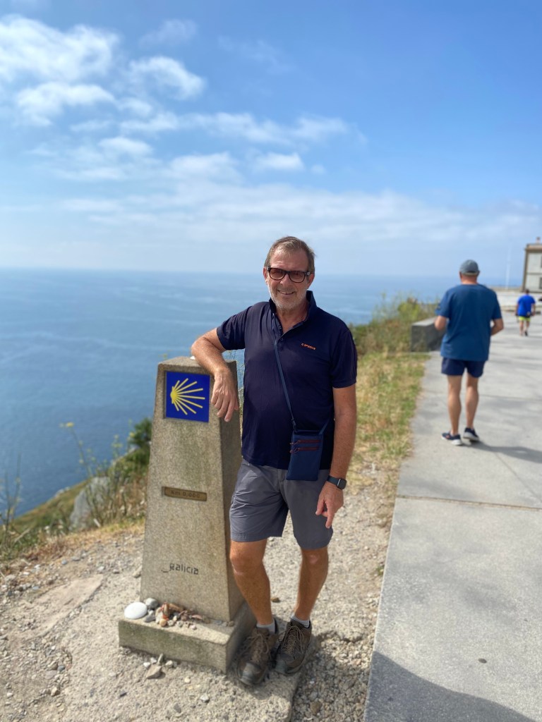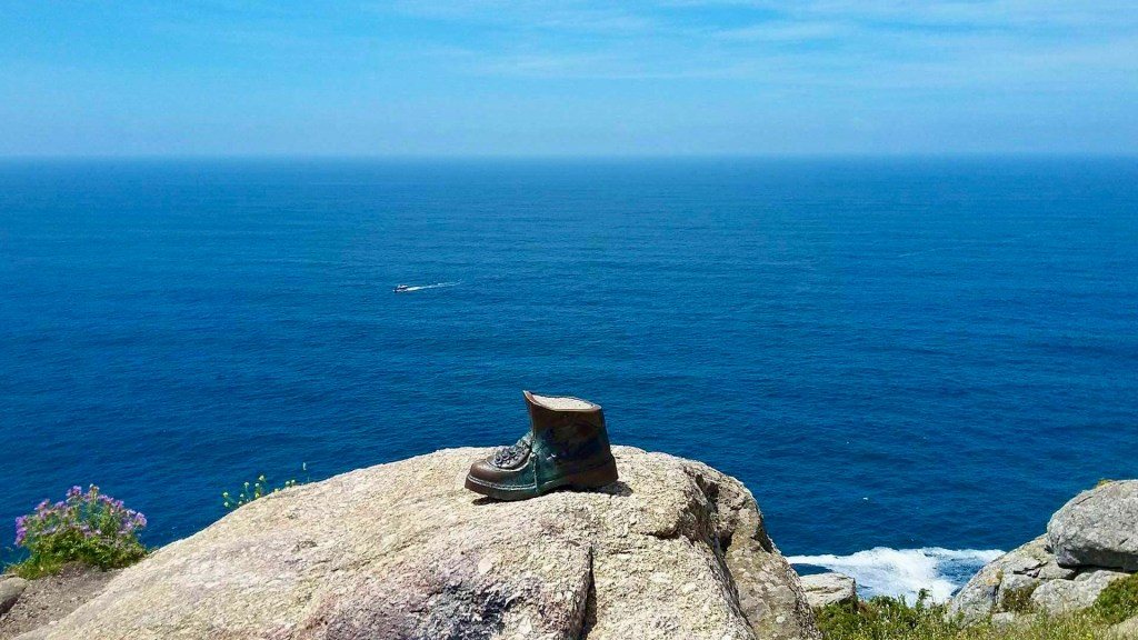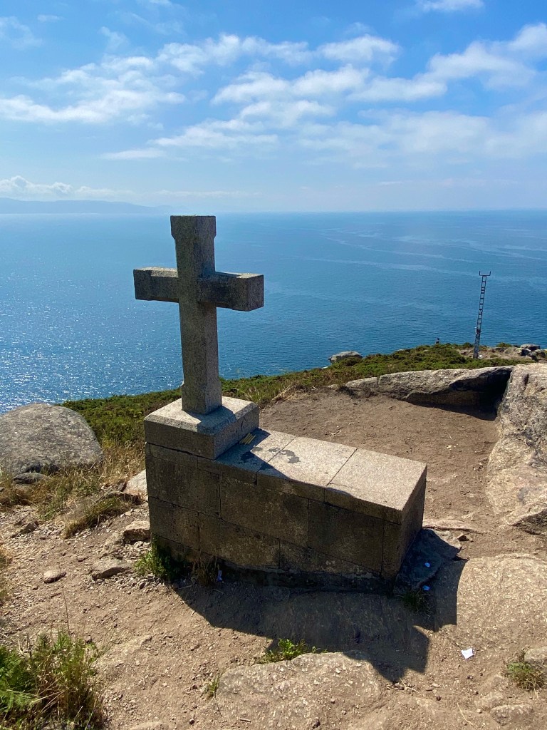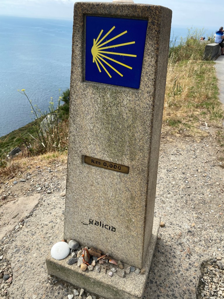 Lundi 18 juillet, départ matinal pour Fisterra. Situé sur la pointe de la Galice, Fisterra, c’est la fin des terres. Cette petite ville côtière se trouve à quelques jours de marche de Saint-Jacques de Compostelle et il est de coutume d’y finir son pèlerinage. Mon crédit temps ne me permet pas d’y aller à pied, je fais donc le trajet en bus. Il me reste à parcourir ce matin 3 kilomètres pour atteindre le cap. Il fait beau la mer est bleue azur. J’arrive sur ce lieu mythique qui marque la fin du chemin terrestre. Face à l’océan, la borne finale indique le kilomètre zéro. Le bus me ramène à Santiago, le lendemain retour au bercail !