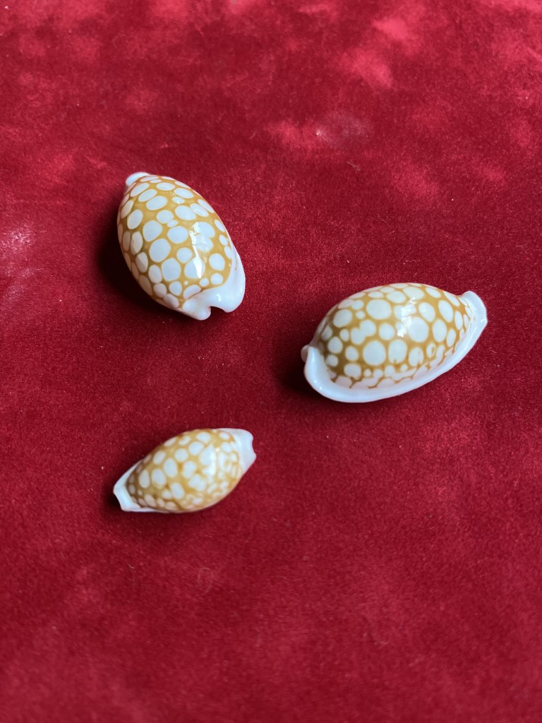 Porcelaine crible. Dos brun rouge, base blanche. Peu commune.