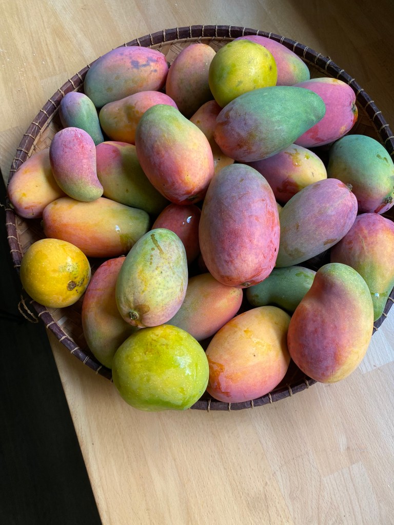 La mangue est un fruit charnu, sa chair adhère à un noyau large et plat.