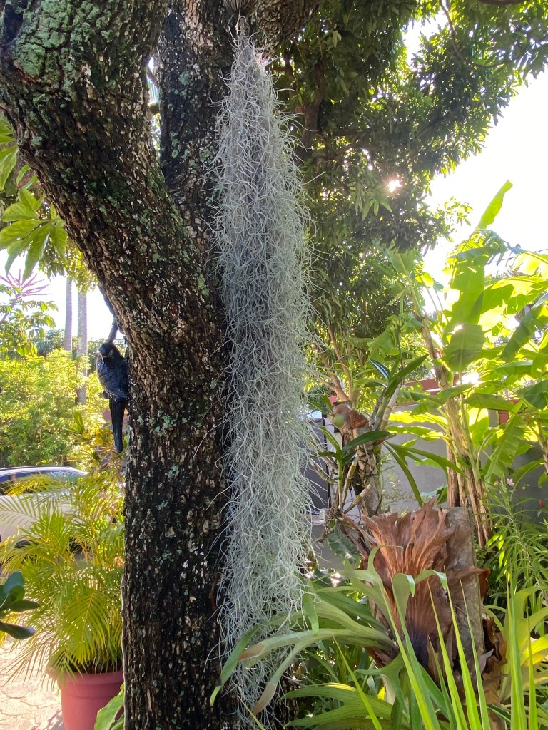 Fille de l’air (la barbe espagnole), ce n’est ni une mousse, ni un lichen. C’est une épiphyte qui absorbe les substances nutritives dans l’air et l’eau de pluie.