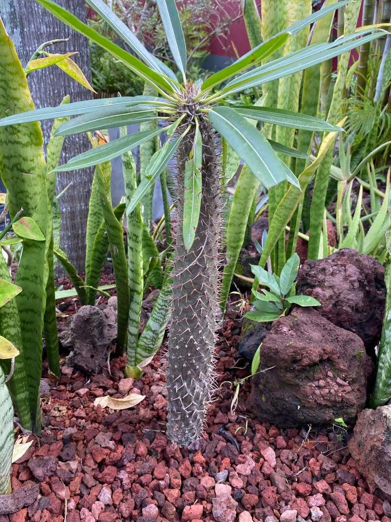 Pachypodium est une succulente arborescente à croissance lente, endémique de Madagascar, son tronc est recouvert d’épines.